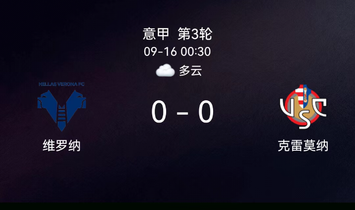 北京时间9月16日意大利足球顶级联赛第3轮,维罗纳坐镇主场迎战克雷莫内塞。全场双方攻防焦灼却均未能打破僵局,最终以平局各取一分,最终比分,维罗纳0-0克雷莫内塞。